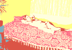 She is lying naked asleep, screen print